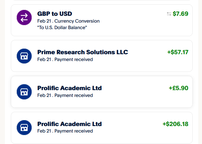 This is what I cashed out from Prolific and Cloud Connect on February 21, 2026: